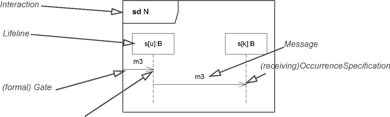 name in_m3) and two Lifeline s (named s[u] and s[k] ) that are contained in the Interaction. Furthermore the two Messages (occurrences)