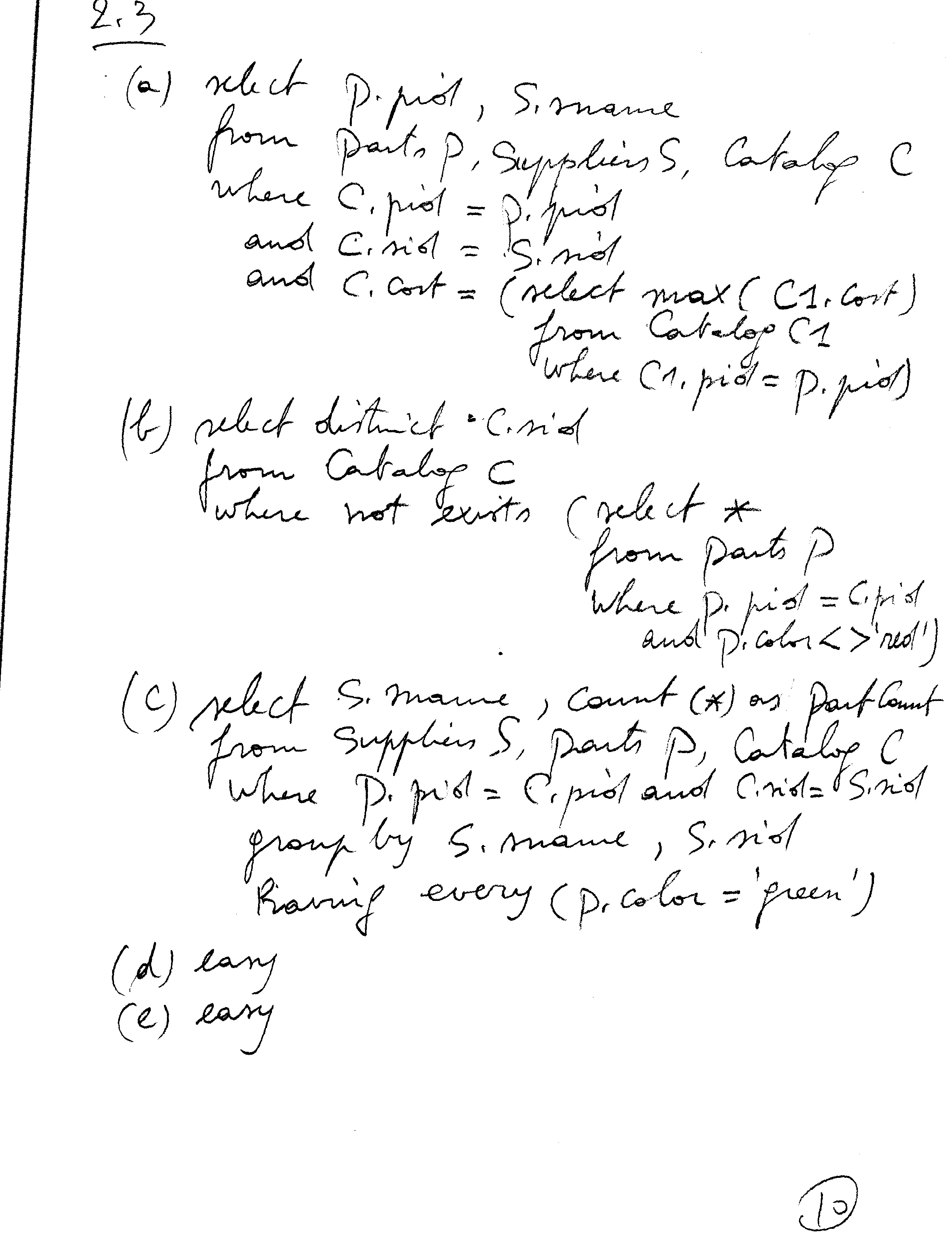 Etudiez: Chap 1; Chap 2: Sections 2.1--2.5; Chap 3: Sections 3.1--3.5 et 3.7; Chap 4: Sections 4.1, 4.2 et 4.3.2 (le calcul relationnel des domaines est seulement pour les étudiants de CSI); Chap 5: Sections 5.1--5.5, 5.6.4, et 5.7.