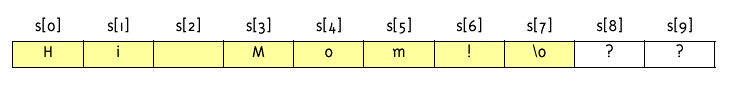 If s contains string Hi Mom, stored as:
