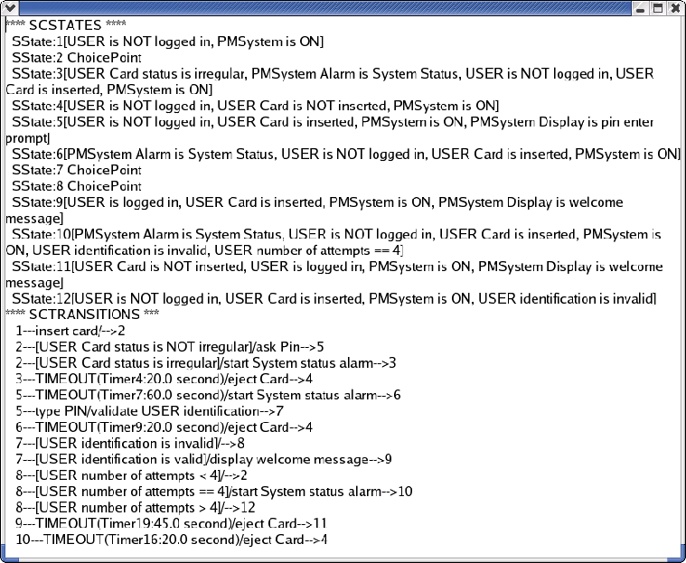 Statecharts are reactive behavior model descriptions where transitions represent complete interactions. Each transition may include a trigger event (an operation performed by an actor) and the system reactions resulting from that event. A transition may also include guards conditions that need to hold for the transition to be possible.