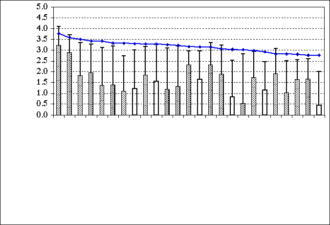 The mean score given to each topic in question 1 (Tables 2 and 3 are sorted by this criterion);