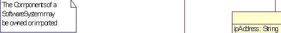 A software package is represented as a SoftwareSystem object, which is a subtype of Subsystem. A SoftwareSystem may reference