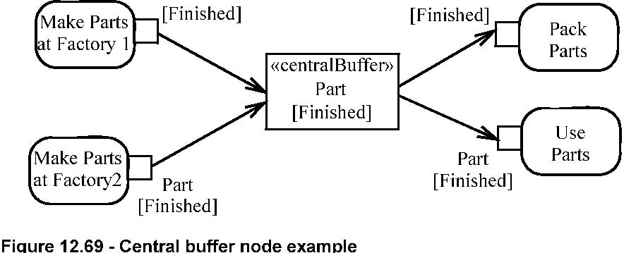 See notation at ObjectNode. A central buffer may also have the keyword «centralBuffer» as shown below. This is useful