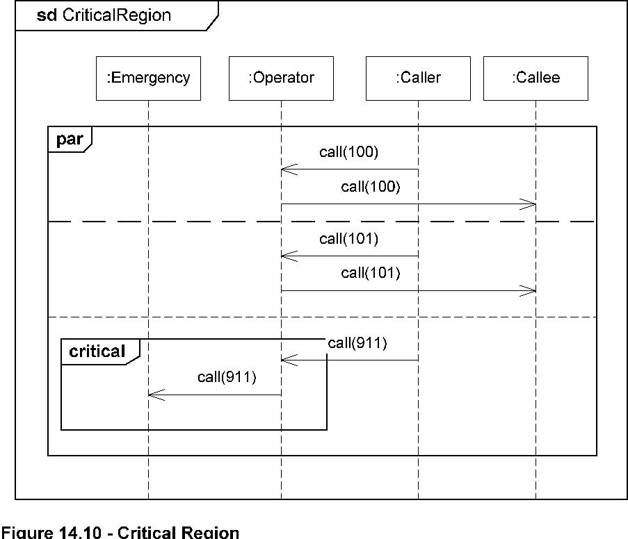 though enclosing CombinedFragment s may imply that some OccurrenceSpecifications may interleave into the region, such as with