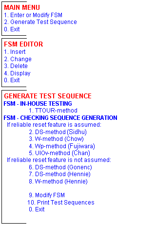 TSG is built up by C programs, in the Unix environment of SunOS 4.1.3. The TSG user interface is text-based.